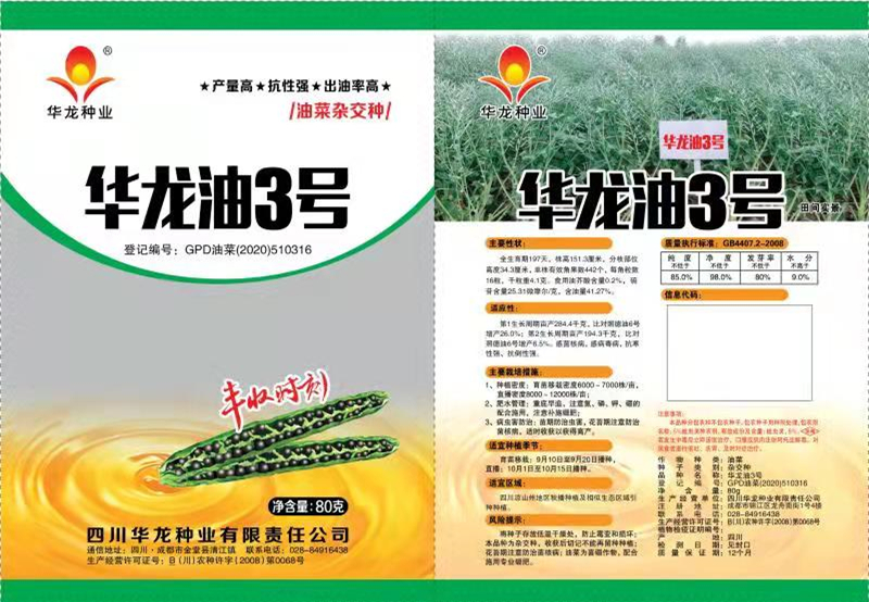 三、特别提醒:杂交油菜华龙油3号、是浓香型高出油率的优质品种,特别适合种植大户以及粮食经销商的选择。